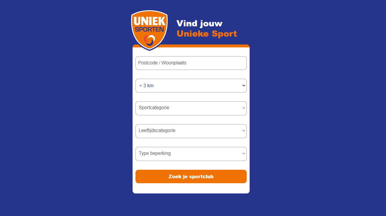 Wil je de widget van Uniek Sporten presetten met jouw postcode, woonplaats, sport(en) en of beperking(en)? Vul deze dan hier in.